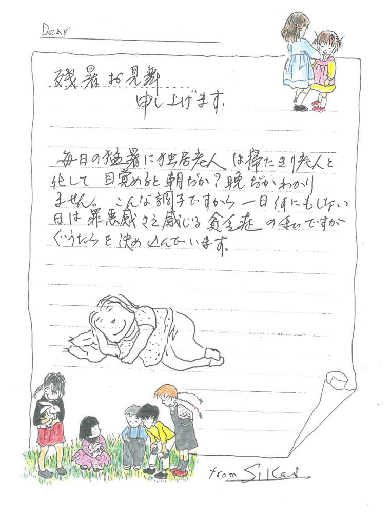 そこで、毎月施設に絵入りのハガキを送ることにした。