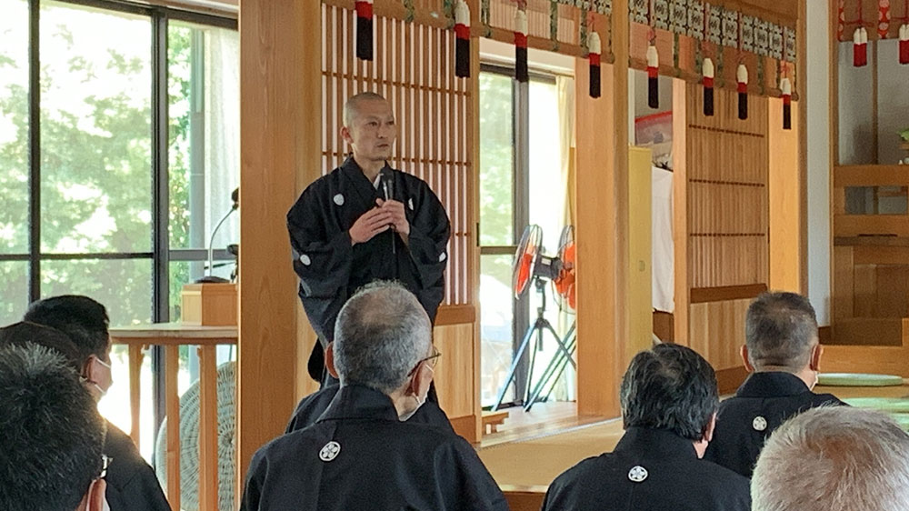 コロナ禍のため、参拝者も大幅に制限し、昇殿前の検温やソーシャルディスタンスをたもった中での参拝でしたが、梅雨の合間の晴れやかな晴天のもと、勇んで奉告祭がつとめられました。