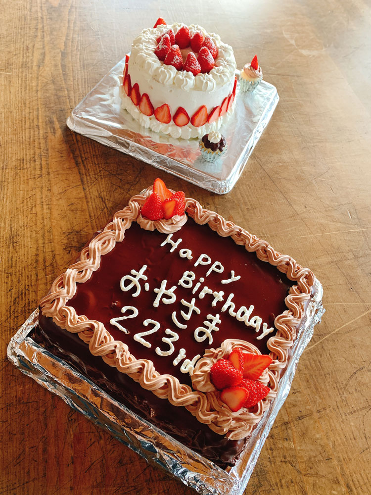 大教会でも10時より遥拝づとめをつとめ、バースデーケーキをお供えさせていただきました。